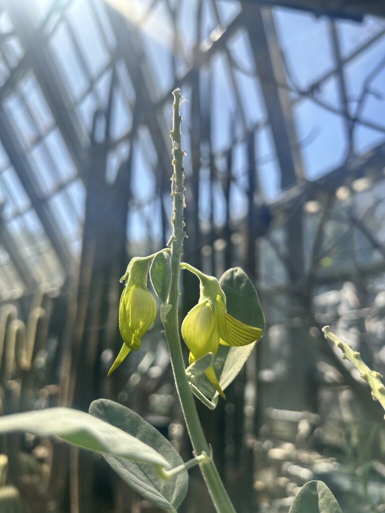 温室でかわいい鳥の形のお花に出会いました